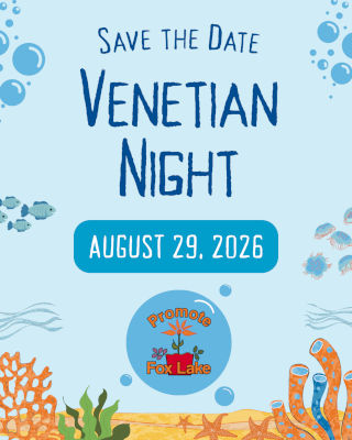 Venetian Night is a community event that will take place at Lakefront Park in Fox Lake on August 29, 2026. This event will be an end of the summer party showcasing Lakefront Park and Fox Lake’s access to the Chain O’ Lakes.